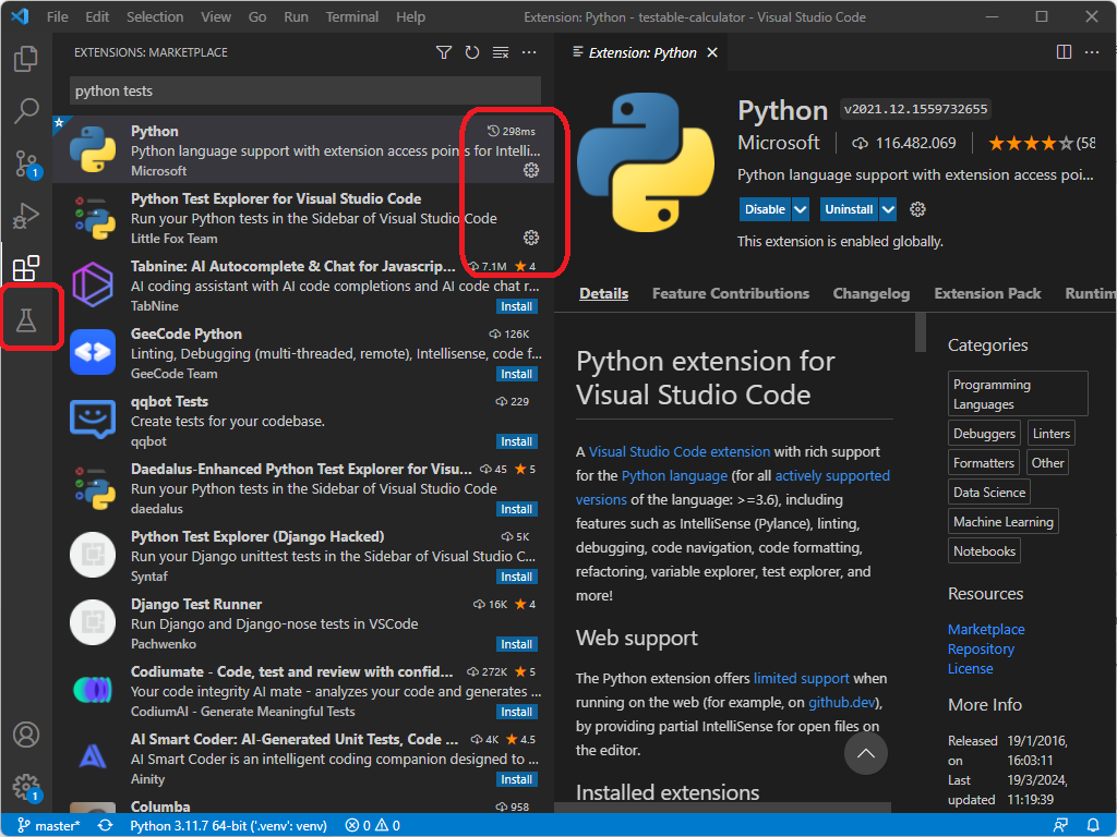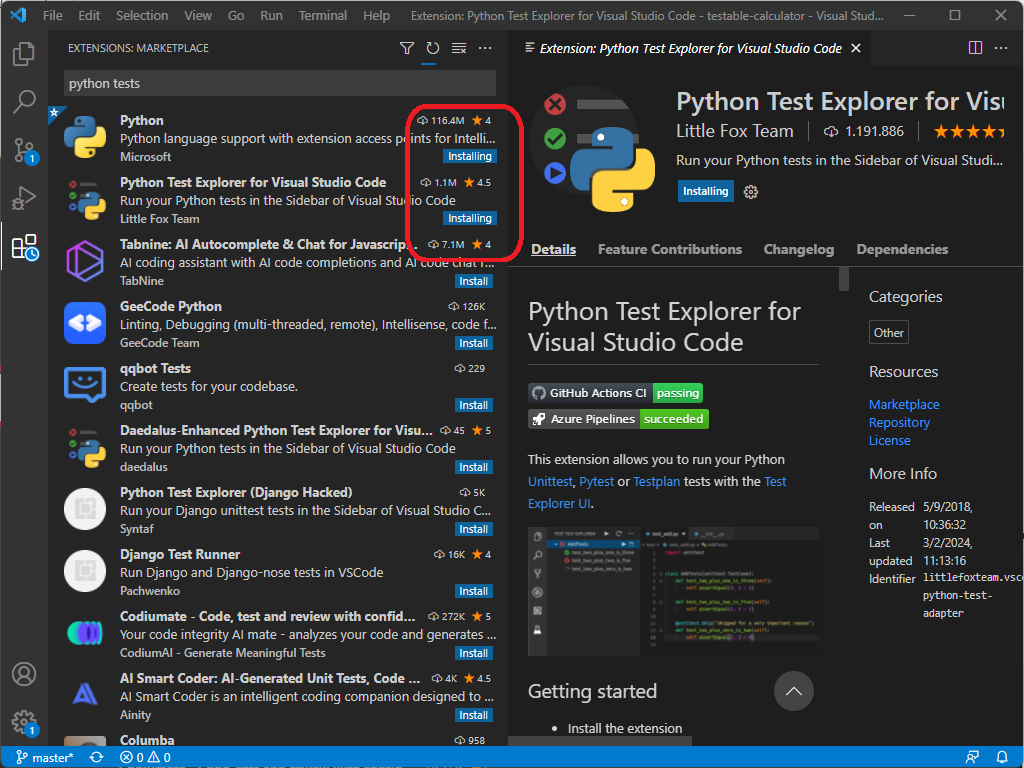 -v stands for verbose (i.e. more detailed output)-s stands for start directory (i.e. the directory where the tests are, in this case tests)Effect of running all tests with subcommand discover: